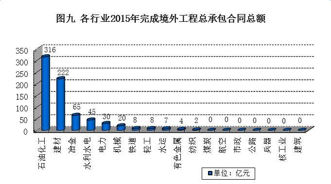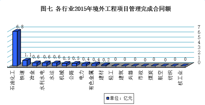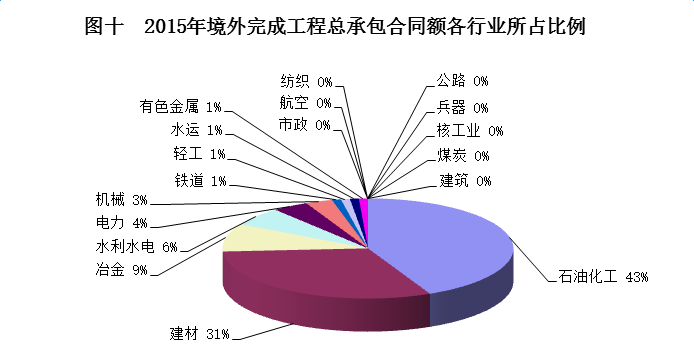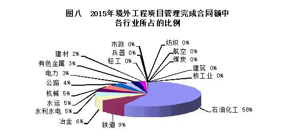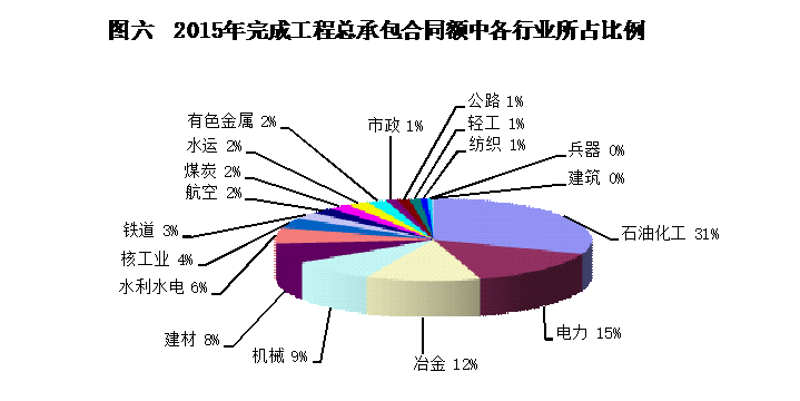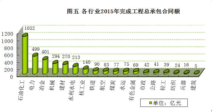 2015年各行业工程总承包业绩:石化行业完成合同额超1000亿,占比最高