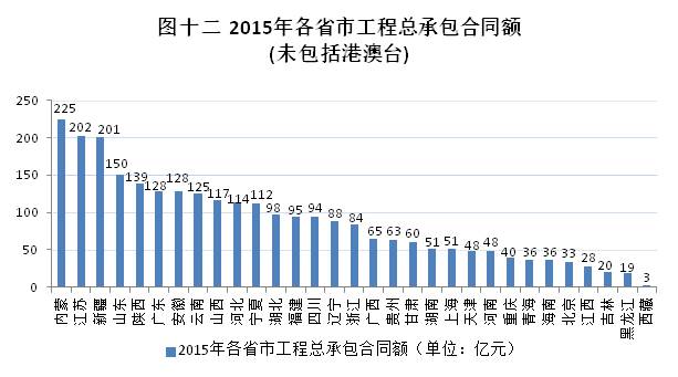 自2002年到2015年,参加排序企业由108家增加到171家,中国中材国际工程股份有限公司、中国电力工程顾问集团公司、中石化洛阳工程有限公司、中国寰球工程公司、中国核电工程有限公司、中国石化工程建设有限公司、中国天辰工程有限公司等7家企业完成工程总承包合同额超过100亿元。